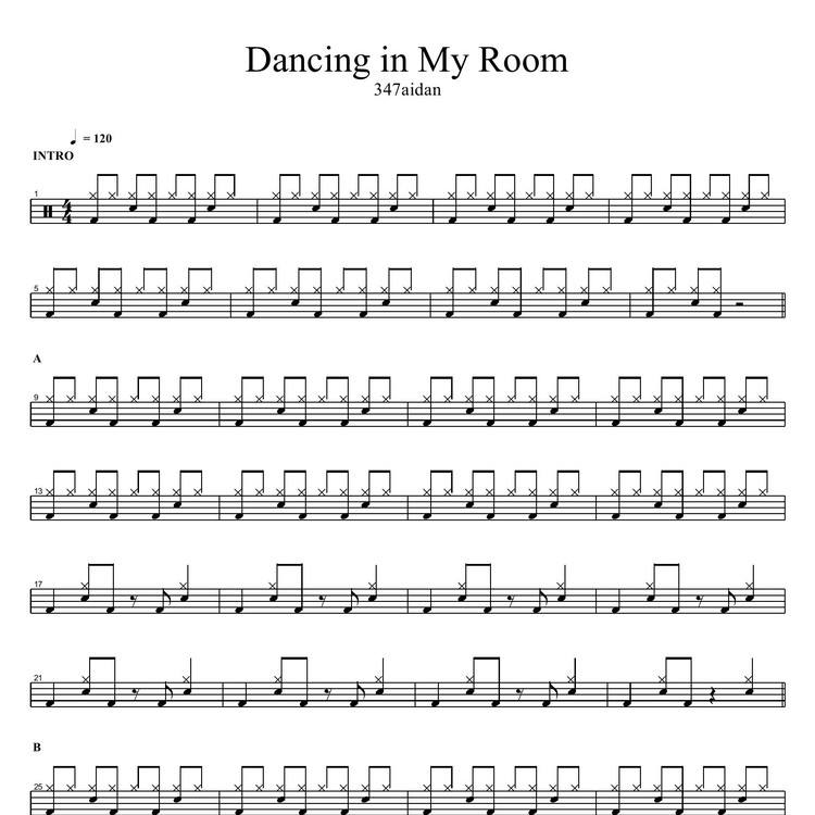 347aidan - Dancing in My Room / 드럼악보 (PDF 다운로드)