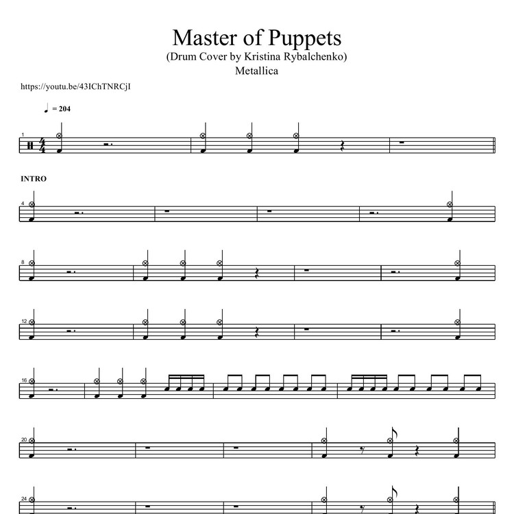 Metallica - Master of Puppets (Drum Cover by Kristina Rybalchenko) / 드럼악보 (PDF 다운로드)