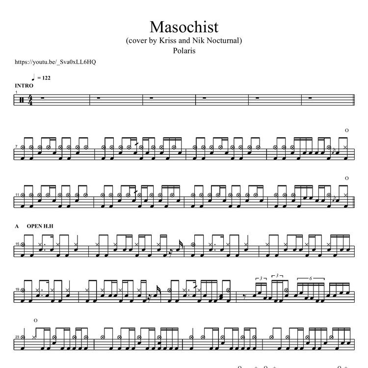 Polaris - Masochist (cover by Kriss and Nik Nocturnal) / 드럼악보 (PDF 다운로드)
