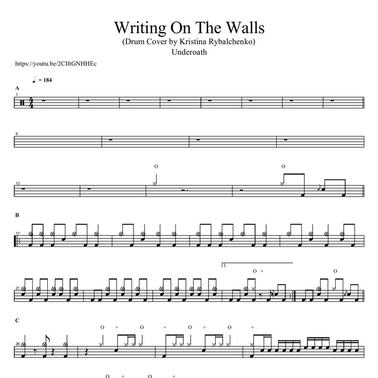 Underoath - Writing On The Walls (Drum Cover by Kristina Rybalchenko) / 드럼악보 (PDF 다운로드)