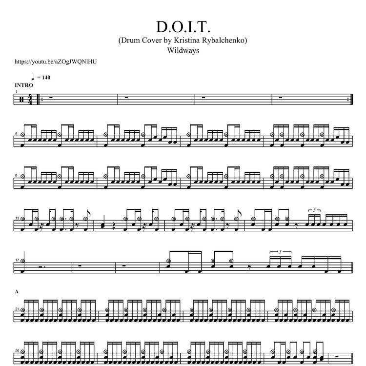 Wildways - D.O.I.T. (Drum Cover by Kristina Rybalchenko) / 드럼악보 (PDF 다운로드)