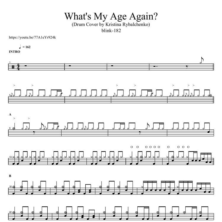 blink-182 - What's My Age Again (Drum Cover by Kristina Rybalchenko) / 드럼악보 (PDF 다운로드)