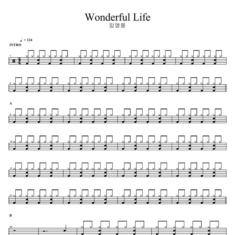 임영웅 - Wonderful Life / 드럼악보 (PDF 다운로드)