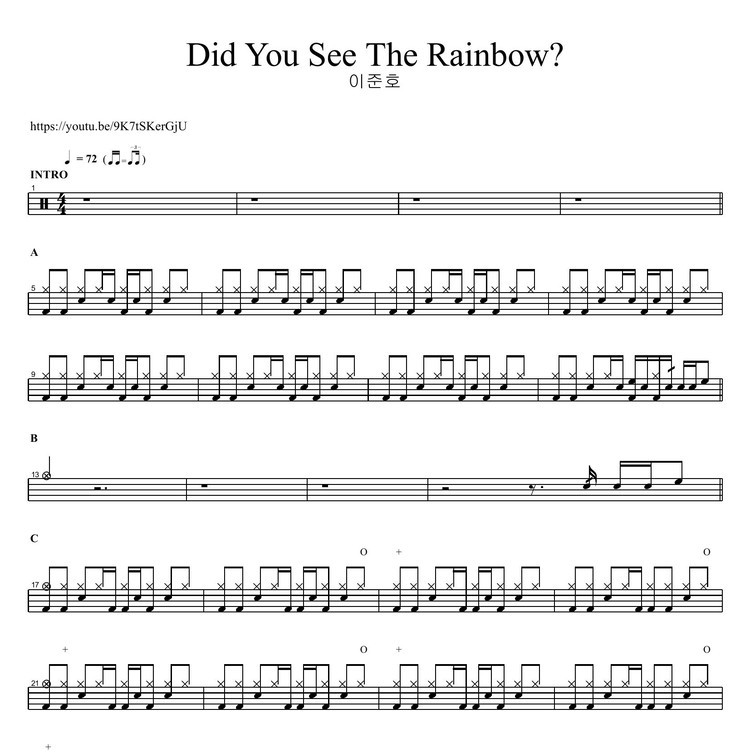 이준호 - Did You See The Rainbow / 드럼악보 (PDF 다운로드)